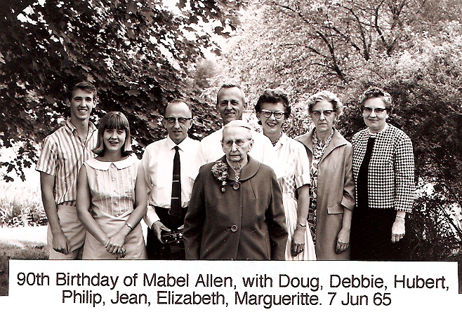 with (L TO R) Doug and Deb (Phil's children), Hubert, Phil and Jean, Elizabeth, and Margueritte (Roger's wife). Missing: Roger (taking the picture) (Click to view Family Card) |