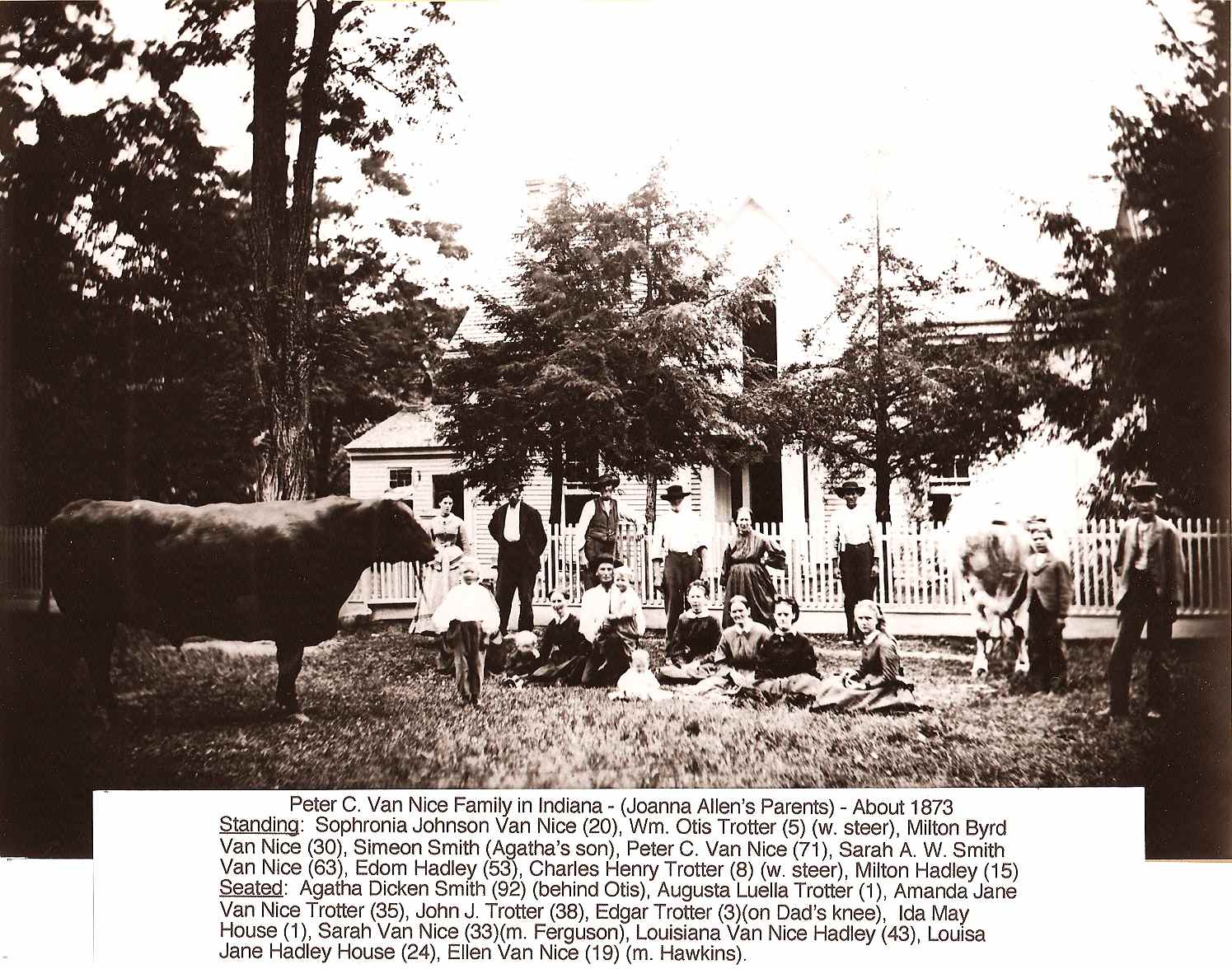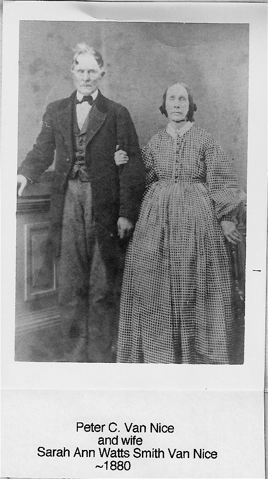 His great, great, great grandson Peter C. Van Nice (1801-1888) was born in Mercer County, Kentucky and married Sarah Ann Watts Smith (1809-1888) in 1828. They moved to Hendricks County, Indiana in 1831 where they lived out their lives, dying within three days of each other.